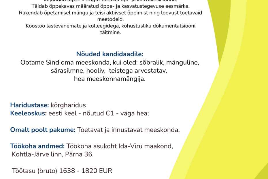 Kohtla-Järve Lasteaed Kirju-Mirju – Rahatarkus “Krõllid saavad rahatargaks” Kategooria: Nutikad rakendamised õppetöös Eduloo esitaja: Helen Puusepp Projekti eestvedajad: Krõlli rühma lapsed, õpetajad Helen Puusepp ja Mairi Allikmaa, Õpetajaabi Rita Andronova. Rühma tugitöötaja Mariia Sokolik. Muusikaõpetaja Ivi Puksing Krõlli rühma rahatarkuse… Ida-Viru hariduse edulugu 2025