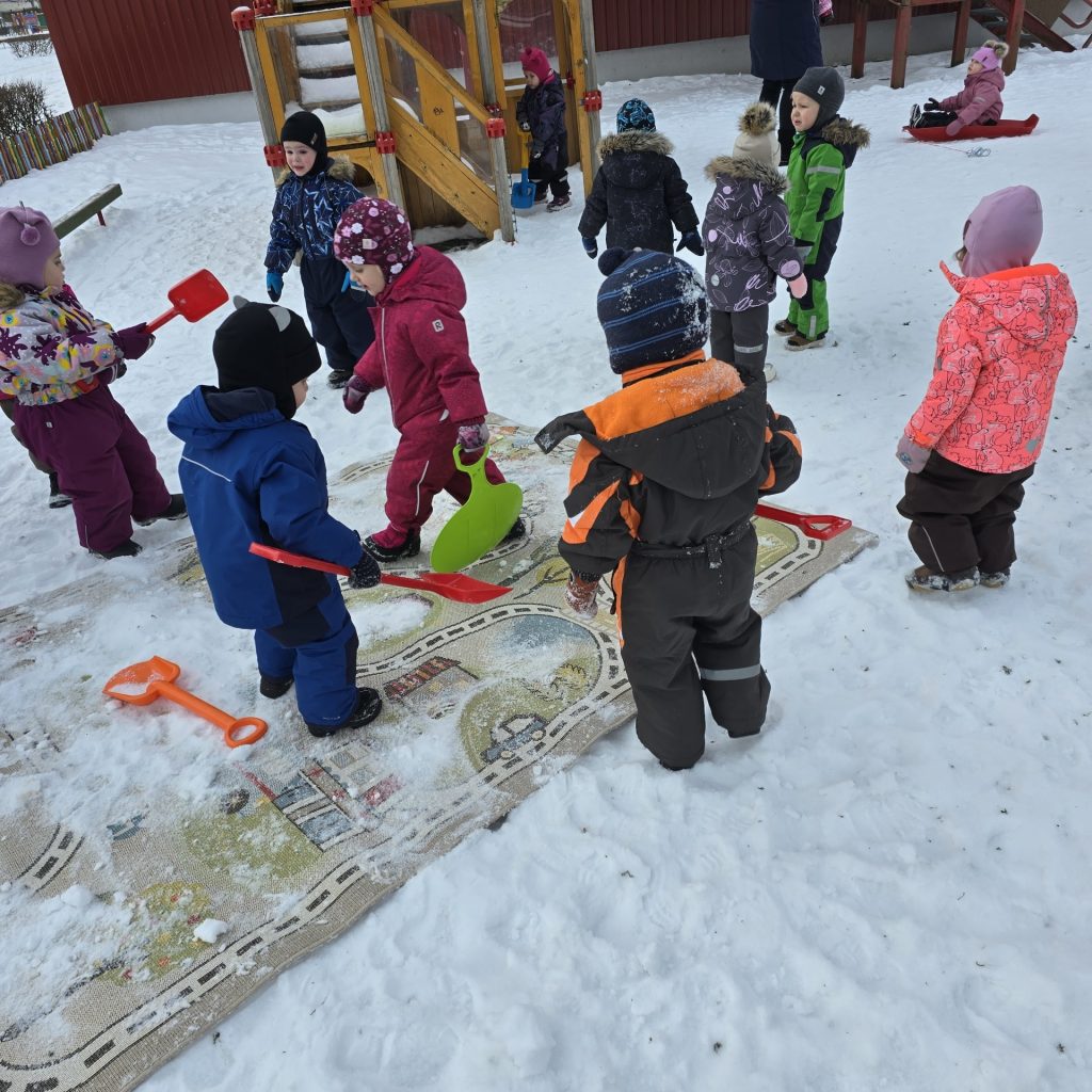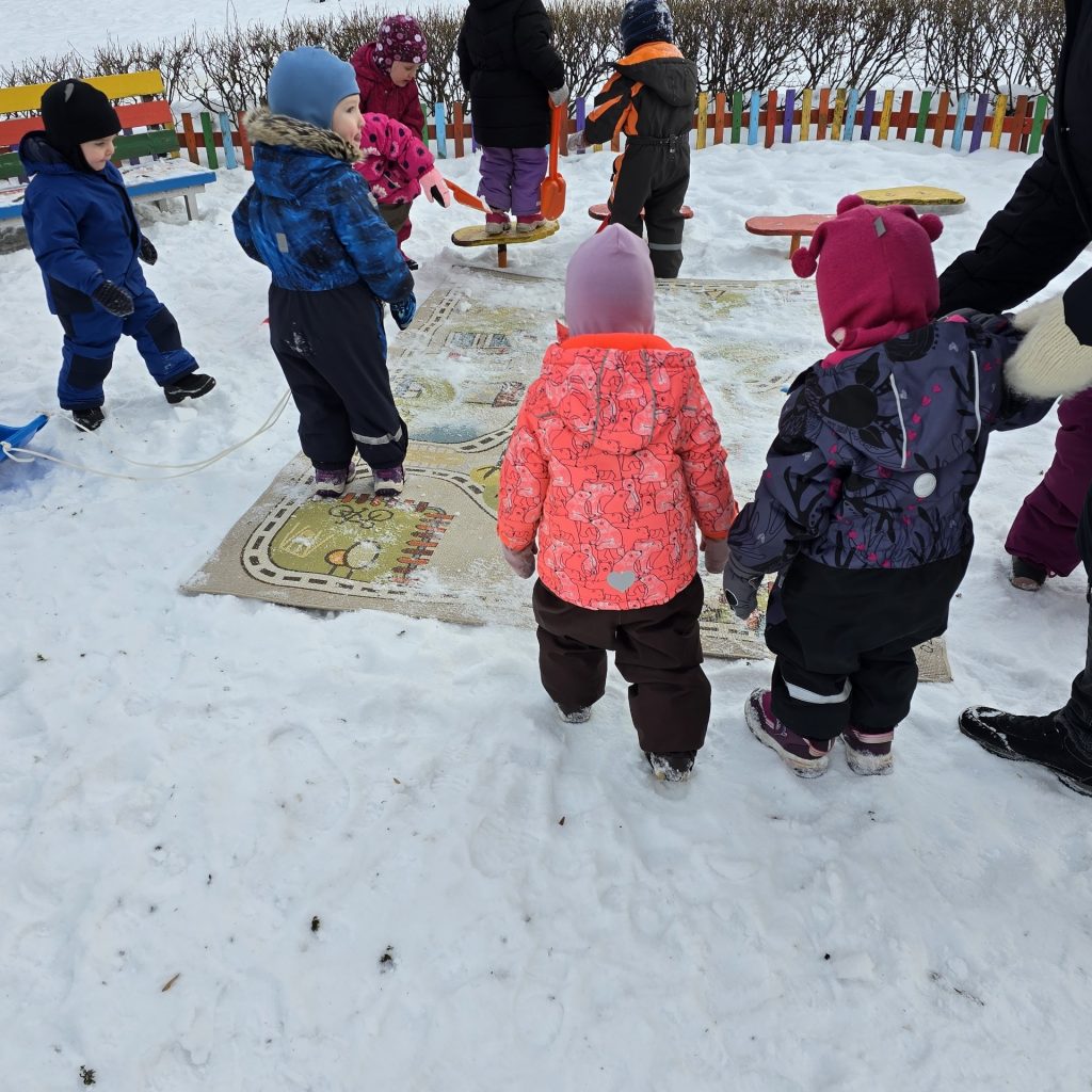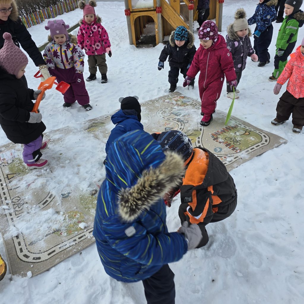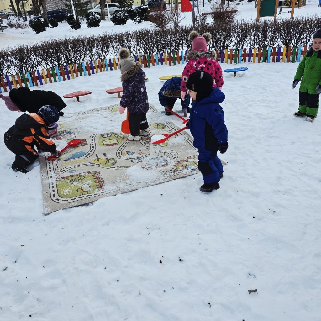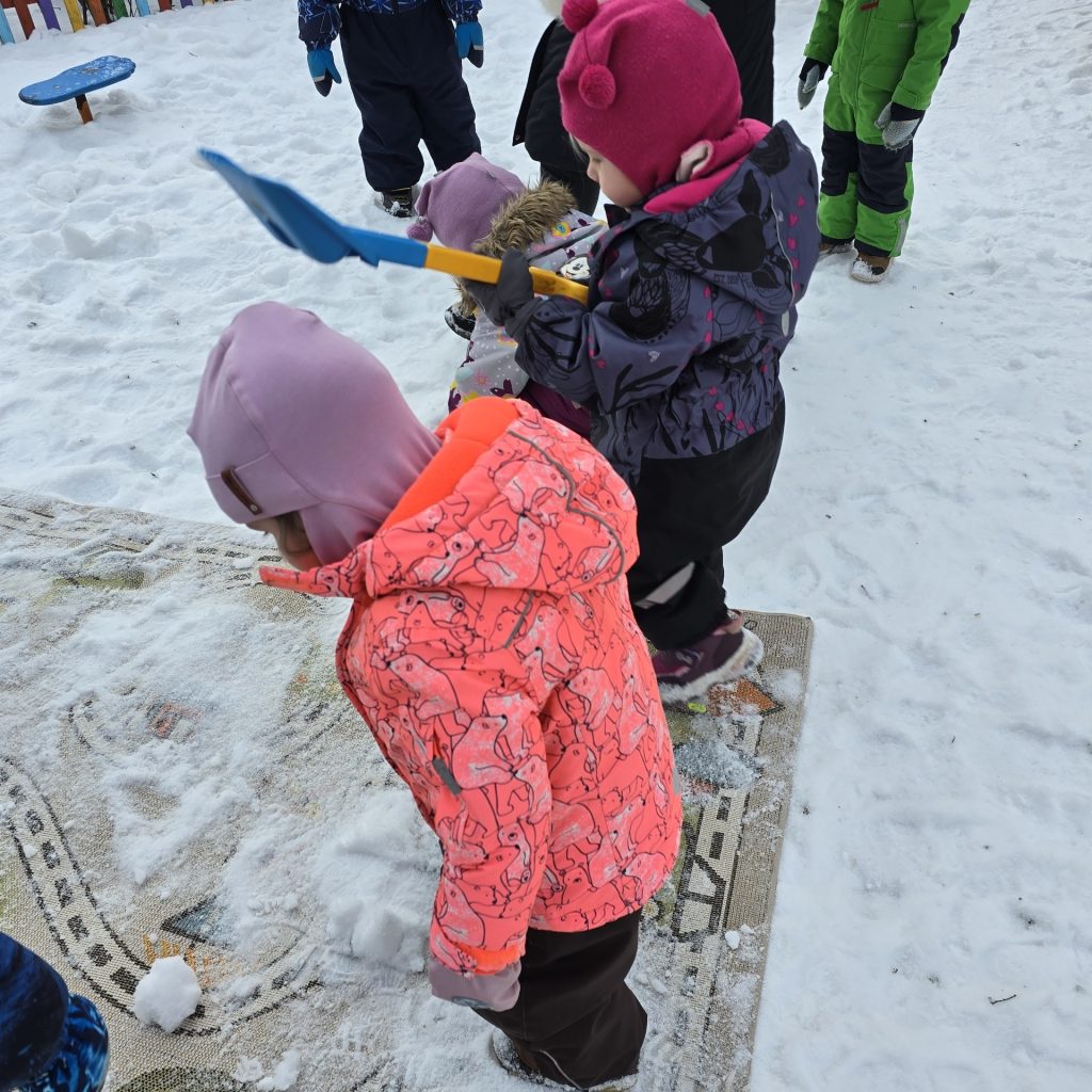 Neljapäev aga viidi vaip rühmast õue lumele tuulduma. Koos klopiti vaipa ning räägiti, miks on hea hoida rühm puhas ja hoolitseda oma asjade eest. Tegevus pakkus lastele rõõmu ühisest tegutsemisest ning õpetas keskkonnasõbralikku ja säästlikku käitumist.
